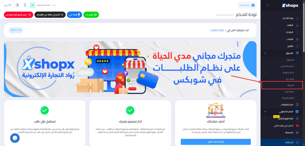2- بعد الدخول على “المدونة”، سيتم توجيهك إلى لوحة التحكم الخاصة بالمدونة.