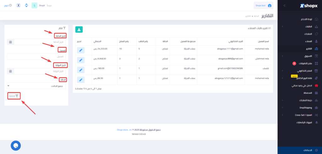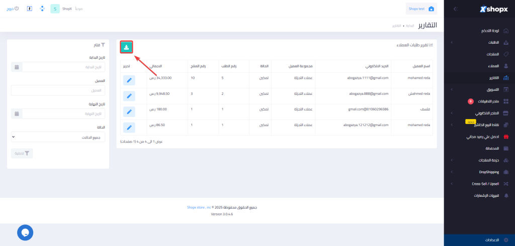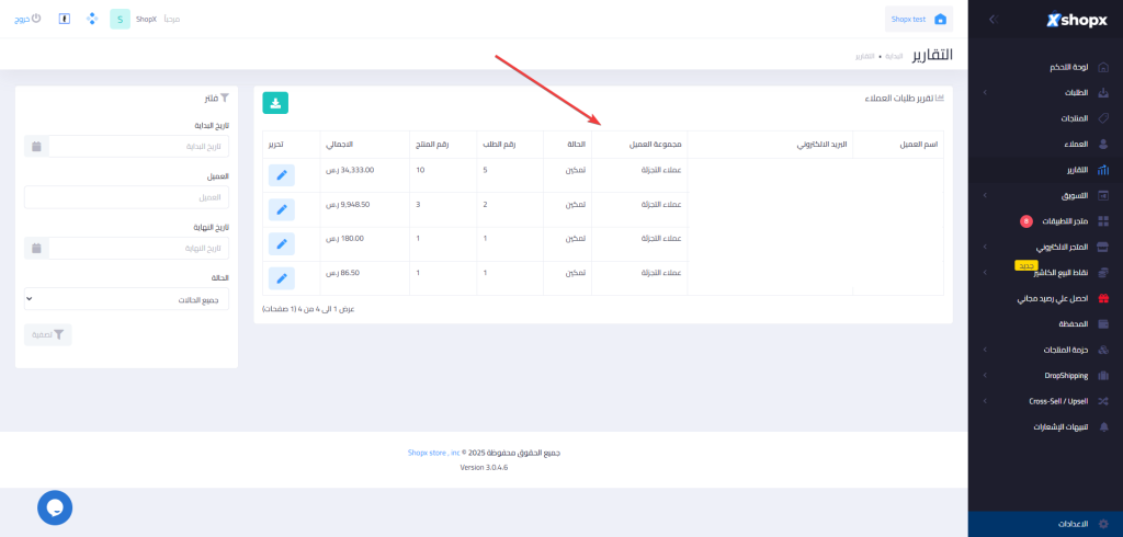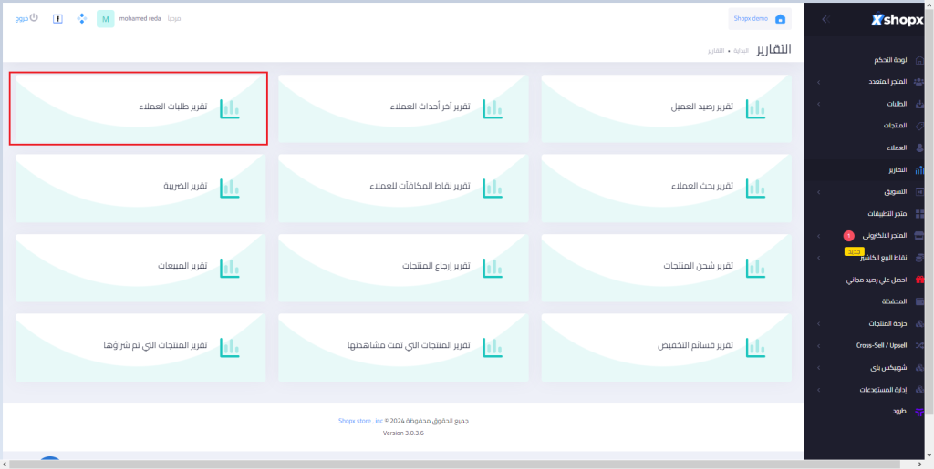 3- اختر “تقرير طلبات العملاء” لمتابعة جميع الطلبات التي قام بها العملاء المسجلون في متجرك.