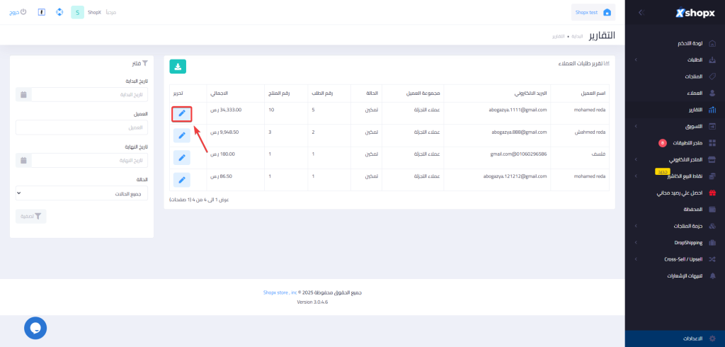 5-للتعديل على طلب العميل، اضغط على أيقونة ✏️ “القلم” (لمعرفة كيفية تعديل حالة الطلب، اضغط هنا).