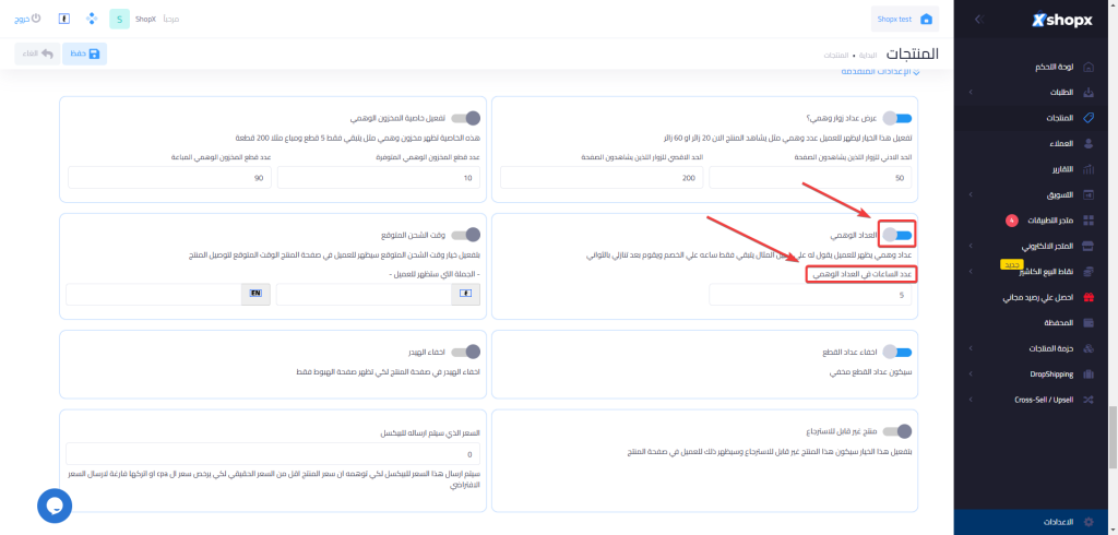 - حدد عدد الساعات التي سينتهي فيها المنتج حسب العداد الوهمي.