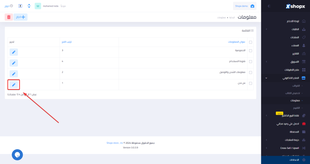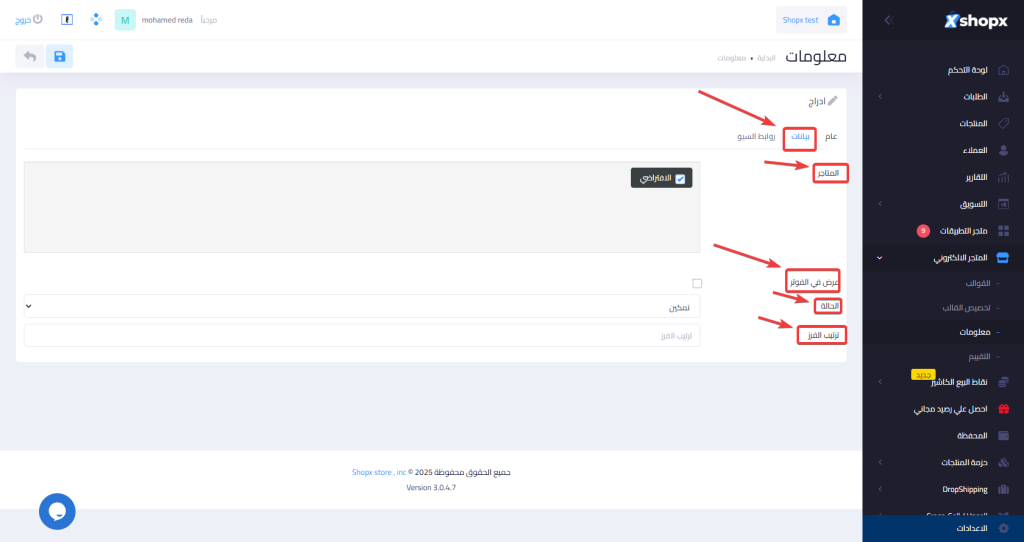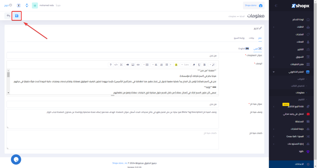 خطوات اضافة صفحة معلومات جديده داخل متجرك :