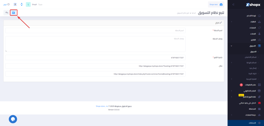 1- ادخل على “التسويق” من الشريط الجانبي للوحة التحكم.