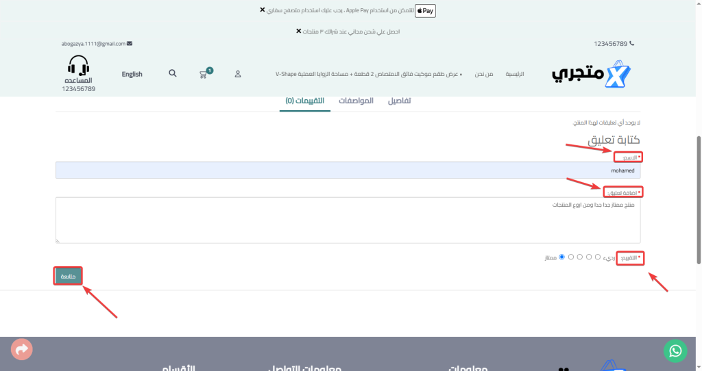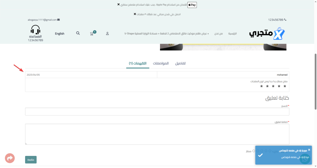 3- بعد الإرسال، سيظهر التقييم داخل صفحة المنتج بشكل واضح للمستخدمين (بناءً على حالة الموافقة من الإدارة إن وُجدت)