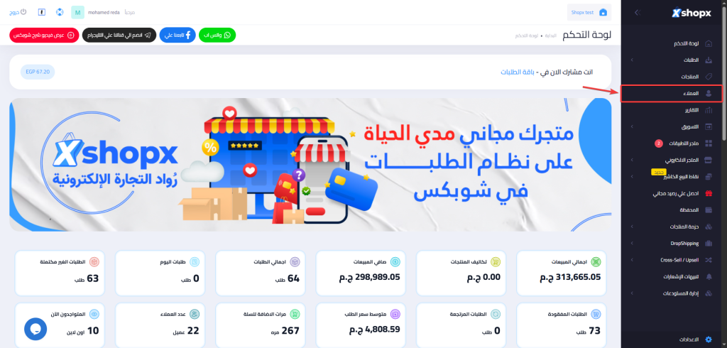 3- انتقل إلى “العملاء” من الشريط الجانبي في لوحة التحكم.