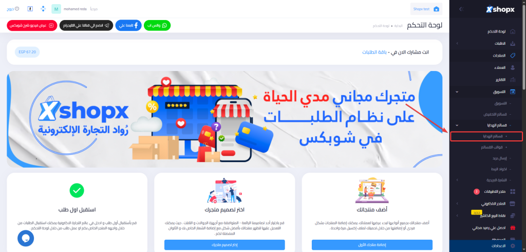 1- ادخل إلى “قسائم الهدايا” من الشريط الجانبي للوحة التحكم.