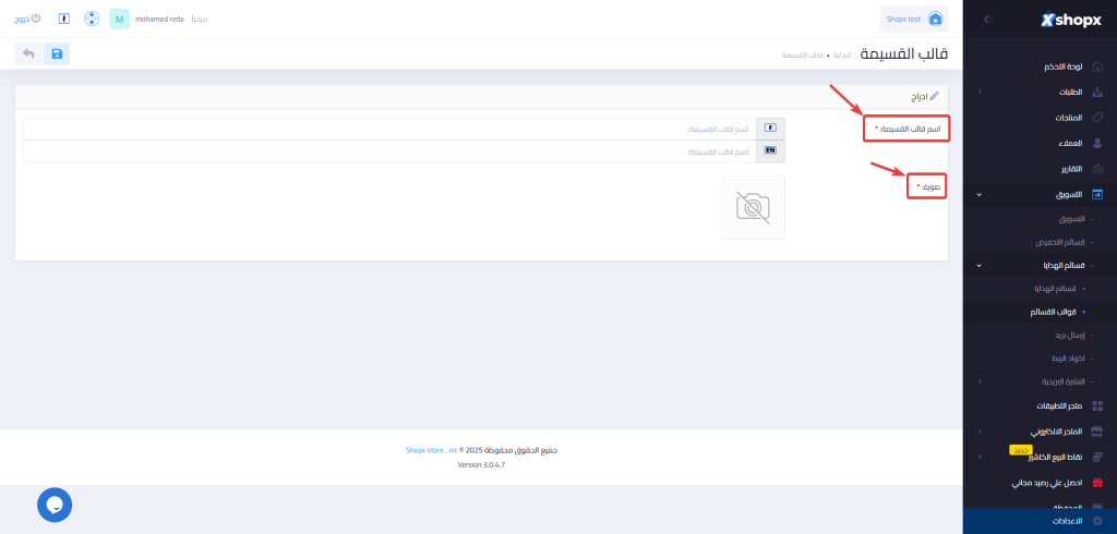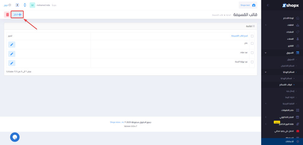 خطوات ادراج قالب جديد لقسائم الهدايا :