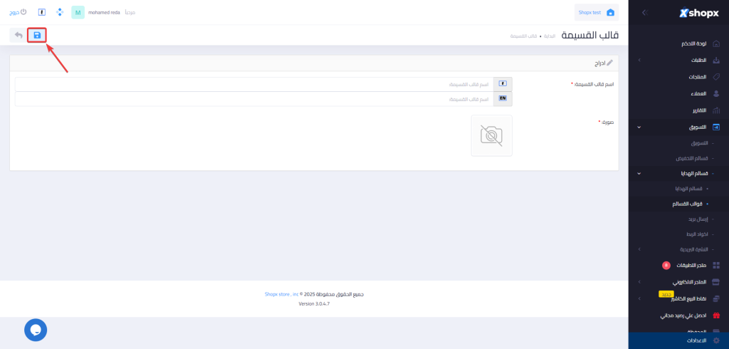 4- بعد الانتهاء من الإعدادات، اضغط على “حفظ 💾” لتأكيد إنشاء القالب.