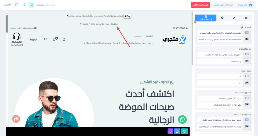 خطوات التعديل علي شريط التنبيهات الموجوده في المتجر :