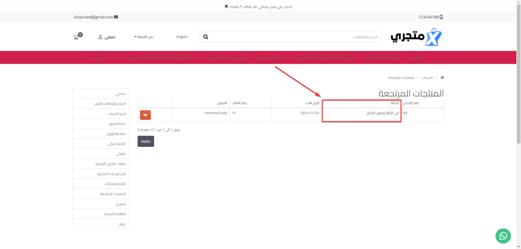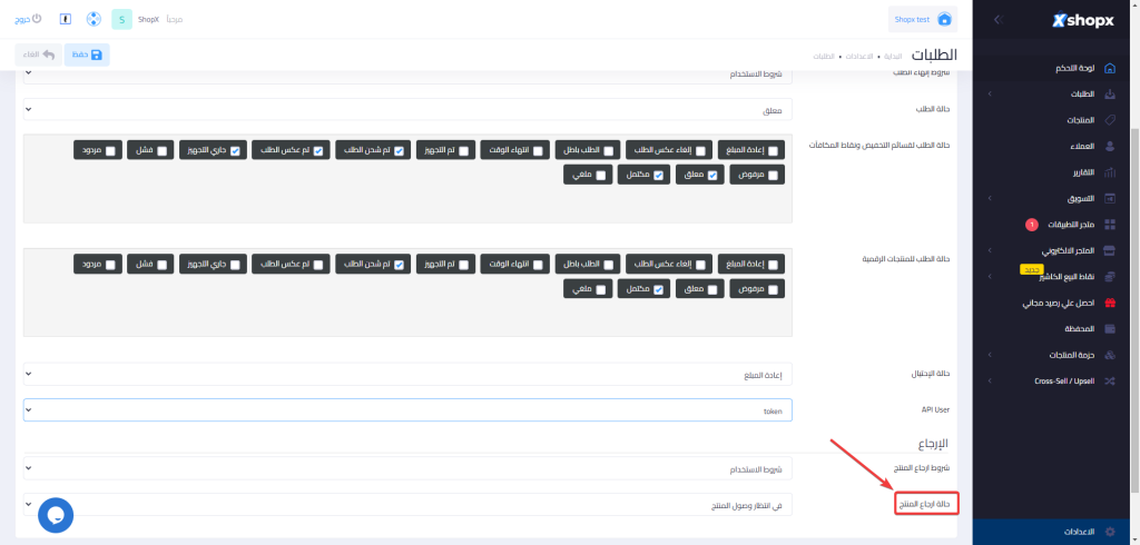 3- قم بتحديد حالة ارجاع الطلب في متجرك