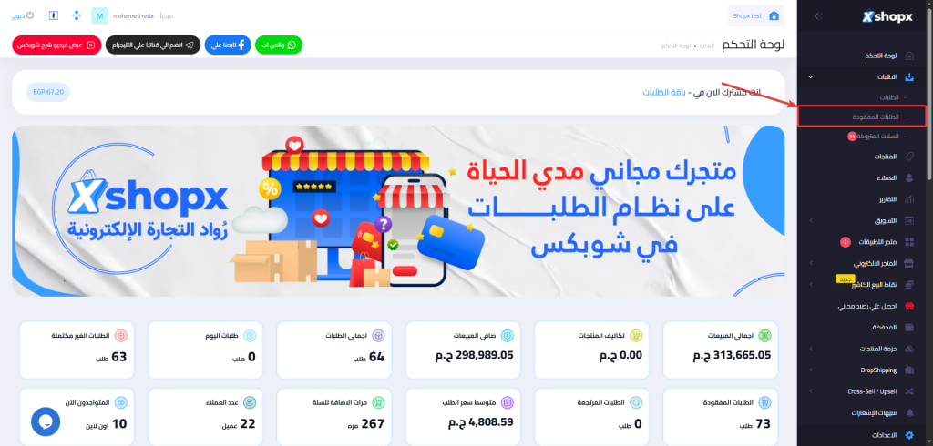 2- بعد ذلك، ستظهر لك جميع الطلبات المفقودة في متجرك، حيث يمكنك الاطلاع على بياناتها والتواصل مع العملاء أصحاب هذه الطلبات.