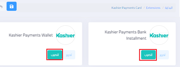 2- قم بادخول علي الاضافه الخاصه بكاشير واضغط على تثبيت الاضافة