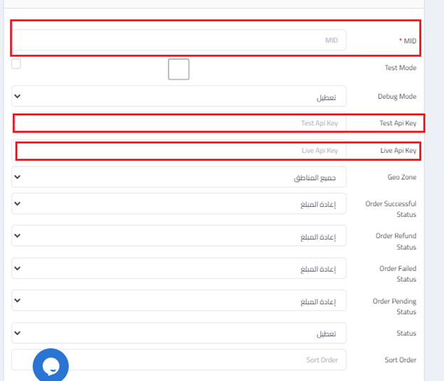 6 -قم بادخال البيانات ووضع API Key و MID الخاصين بك في حسابك بكاشير