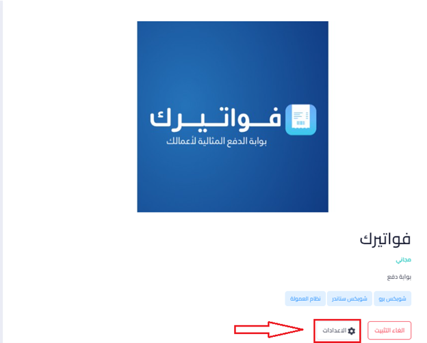 7. ادخل علي اضافة شوبكس تشيك اوت و قم بالدخول علي الاعدادات